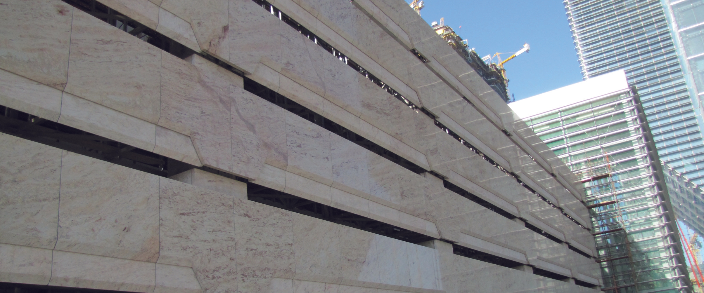 Natural stone façades are constructed using stainless steel stone anchoring systems. This system provides a secure and straight forward method for supporting stone panels on load-bearing backing walls.