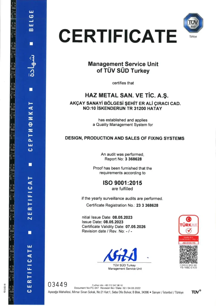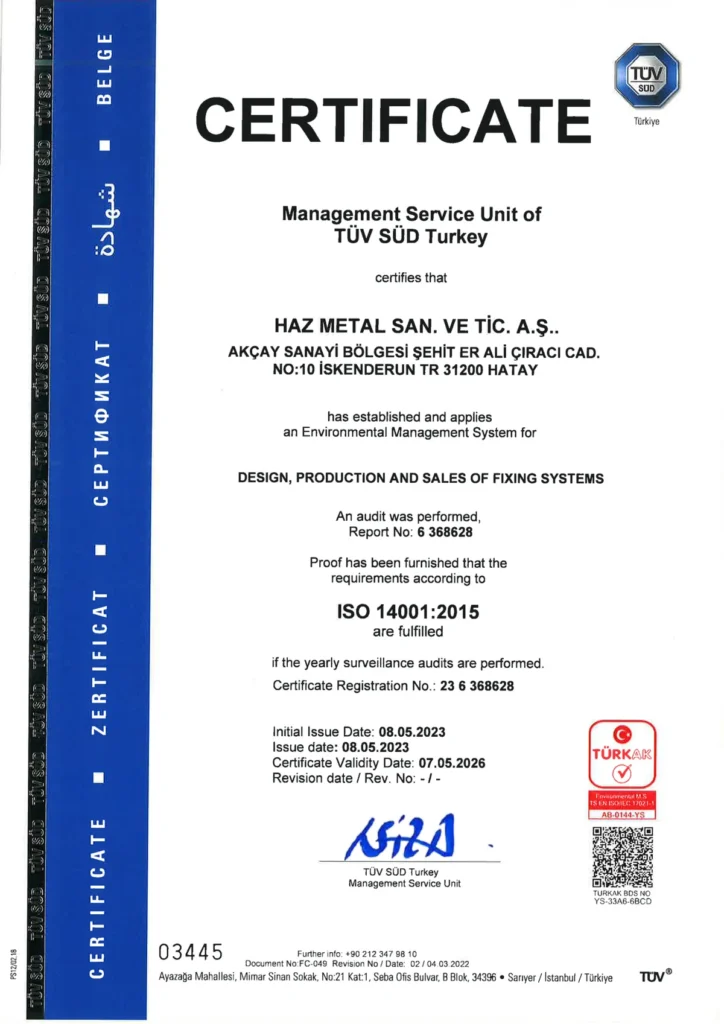 Verify our commitment to quality. Download all relevant certificates for Haz Metal's manufacturing processes, façade fixing systems, and masonry support solutions.
