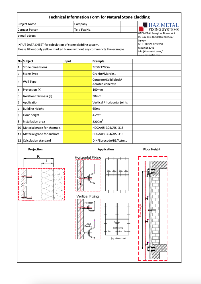 Stone Fixing Technical Information Form