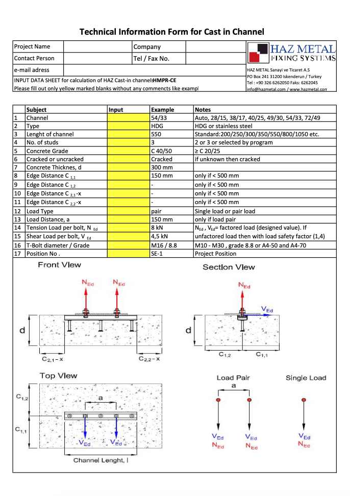 Submit your project requirements via our technical questionnaires. Ensure you get the optimal design for your cast in channel, stone fixing system or brickwork support systems.