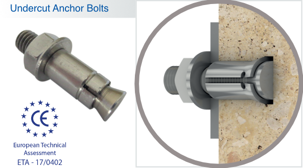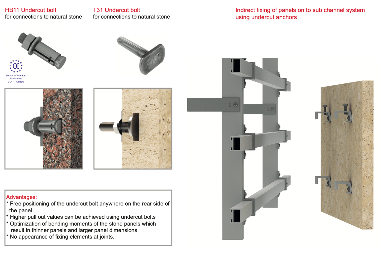 The HB11 and T31 Undercut bolts are designed for secure attachments on the rear surfaces of stone panels.