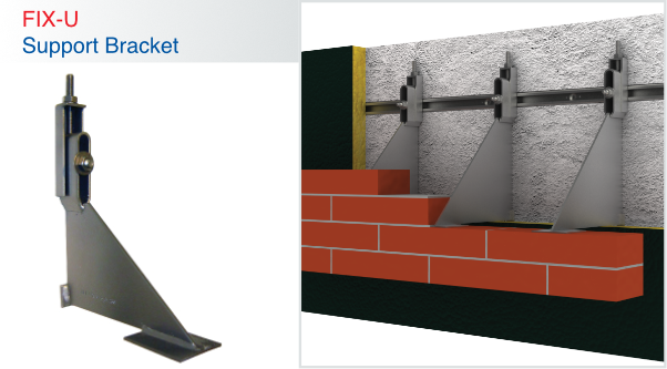 FIX Brickwork support brackets are adjustable and secure brackets that are designed for the easy and quick installation of brick facing walls. FIX support brackets are user-friendly and are combined with a patented adjustable profile part that is assembled in the top of the bracket body.