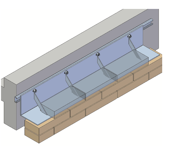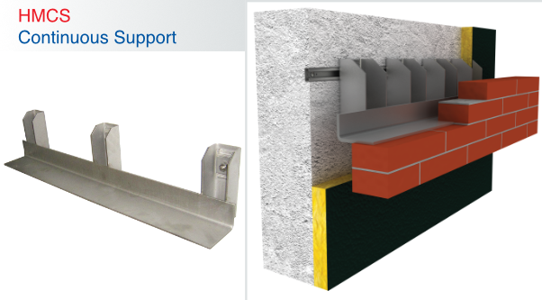 The HMCS brickwork continuous supports consist of a series of U brackets with welded angles. There are welded milled shims on the U brackets that enable secure positioning in the vertical axis after adjustment.