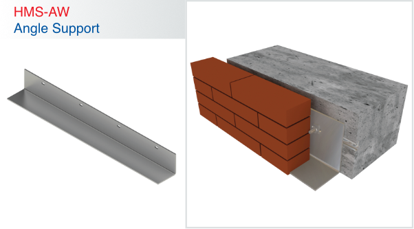 HMS Angled supports are simple fixing systems used for supporting brickwork walls. These anchors do not have vertical adjustability, but horizontal adjustment can be made through the slotted holes drilled at each 25 cm.