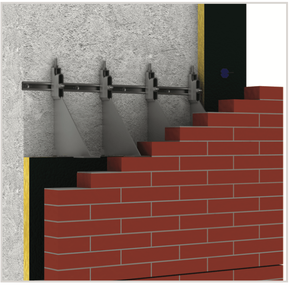 Brickwork support systems facilitate the secure and easy installation of masonry facades. Support brackets transfer the dead loads of non-load-bearing outer masonry walls to load-bearing inner walls.