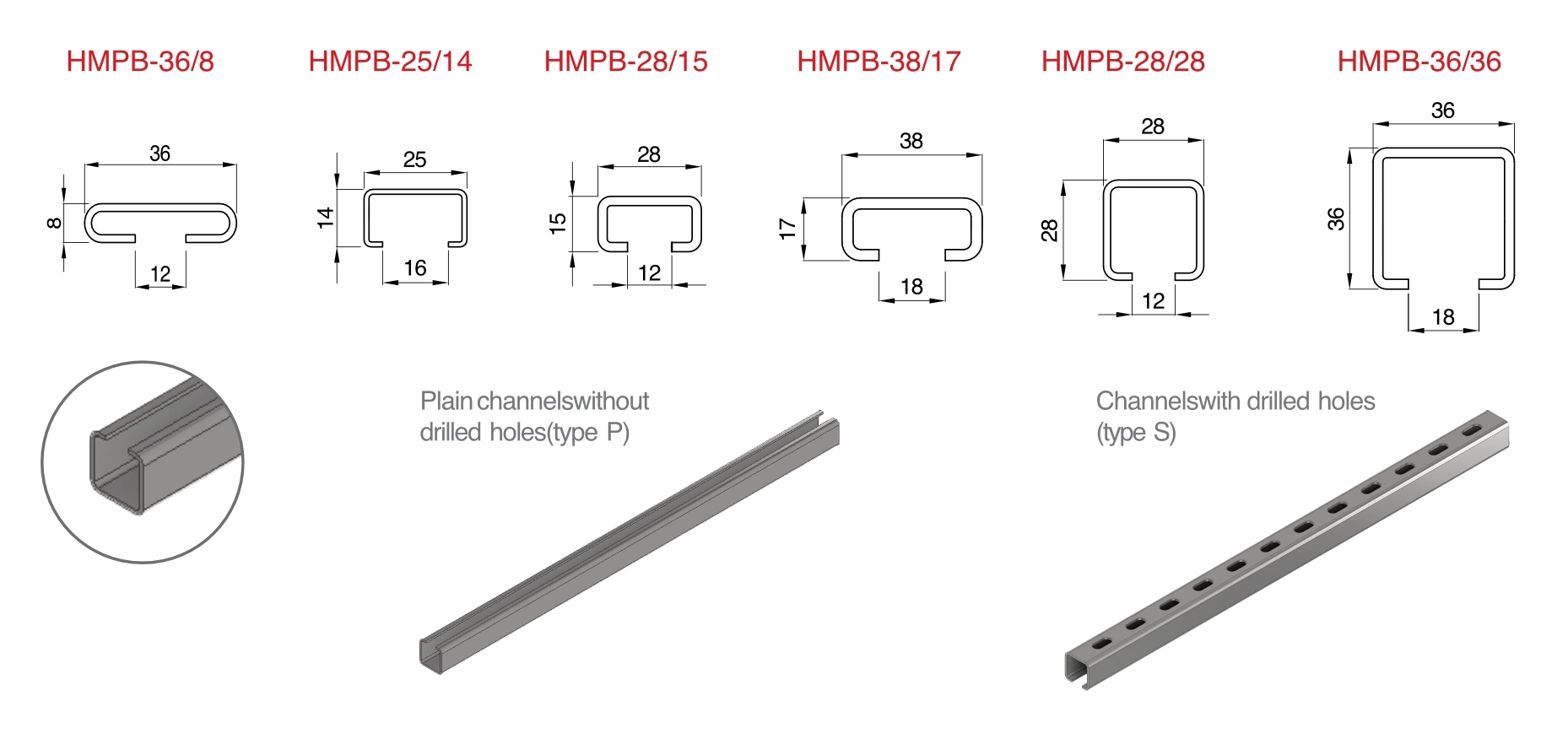 These channels are offered in hot-dip galvanized and electro-galvanized mild steel.