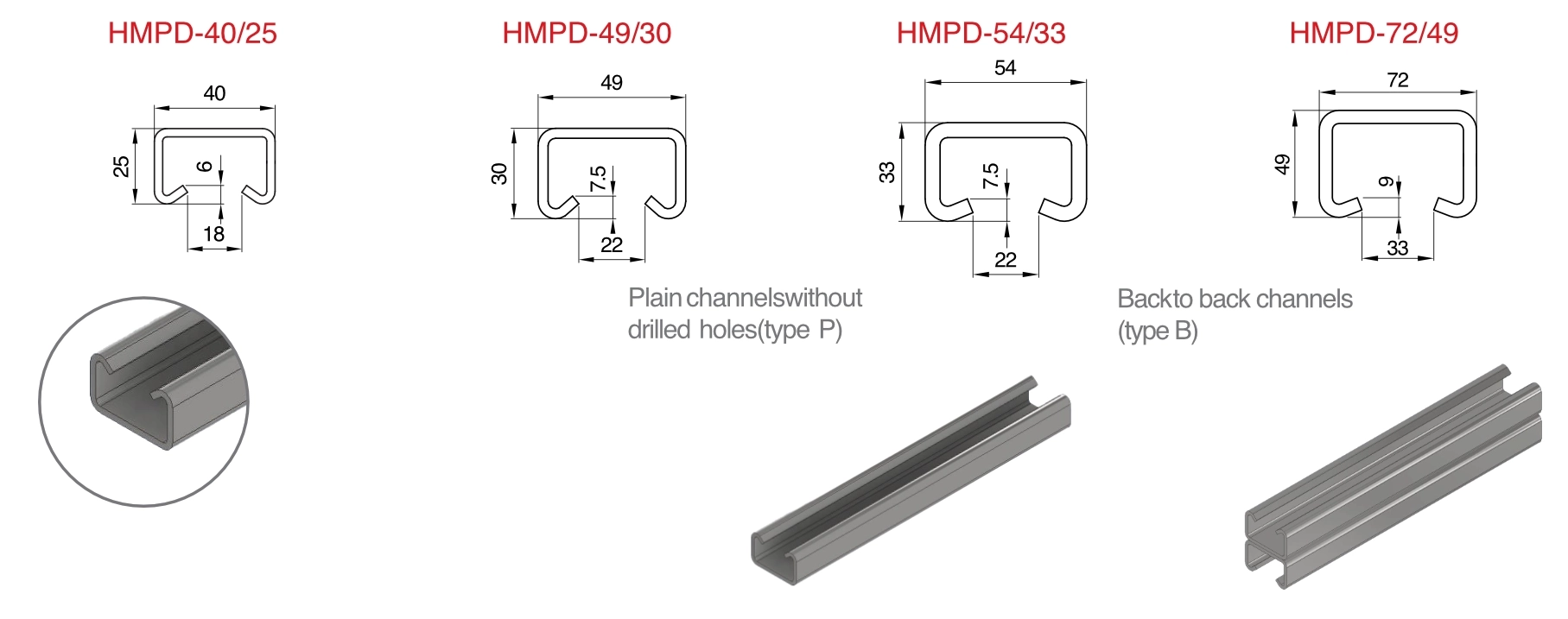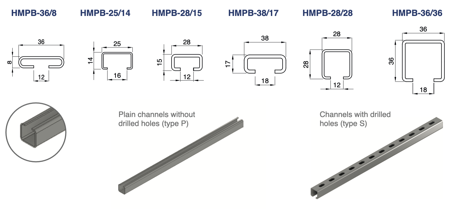 These channel connections are available in three series, designed to be compatible with HMPB and HMPC channels: