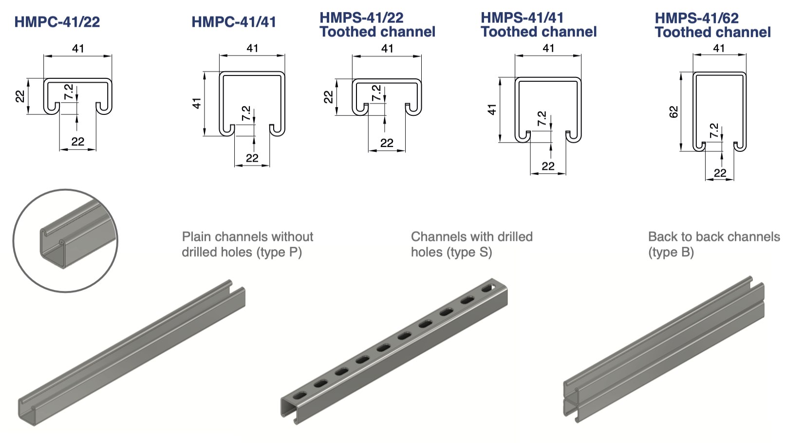 Cold and hot rolled framing channels with normal and toothed lips are suitable for heavy-duty loads.