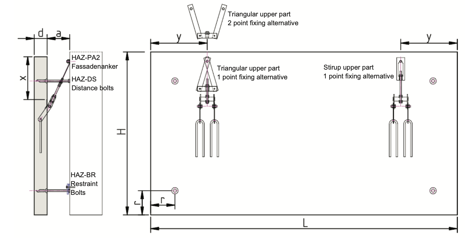The FIX-PA Panel brackets consist of upper section, centre section and special fitting which is cast in to the concrete panel. Depending on the load resistance and the fixing type to the structure, there are different types of an upper section. The standart upper section is fastened at the edge of the sub structure.