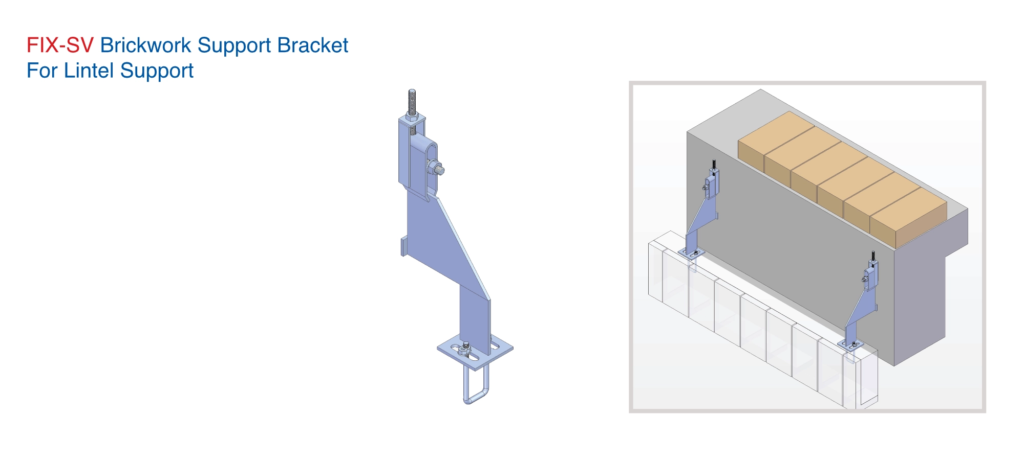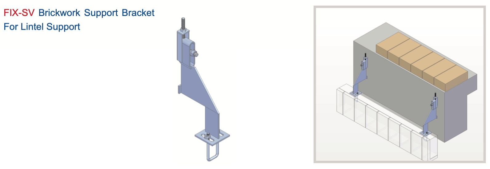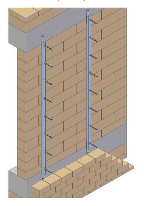 Concealed Fixing: A custom-designed steel component is used in combination with slotted hole plates to support bricks with reinforcement bars.
