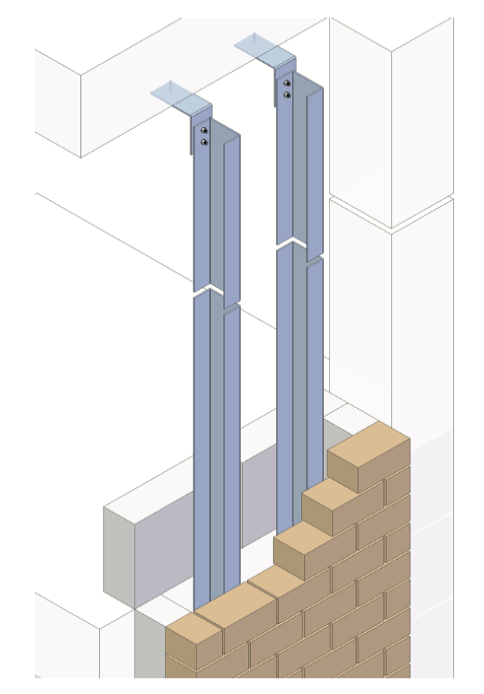In combination with suitable wall ties, they help restrain brickwork walls against wind pressure and suction. The windposts are made from specially designed channels with welded plates featuring slotted holes, allowing for easy and secure fixation onto reinforced concrete beams.